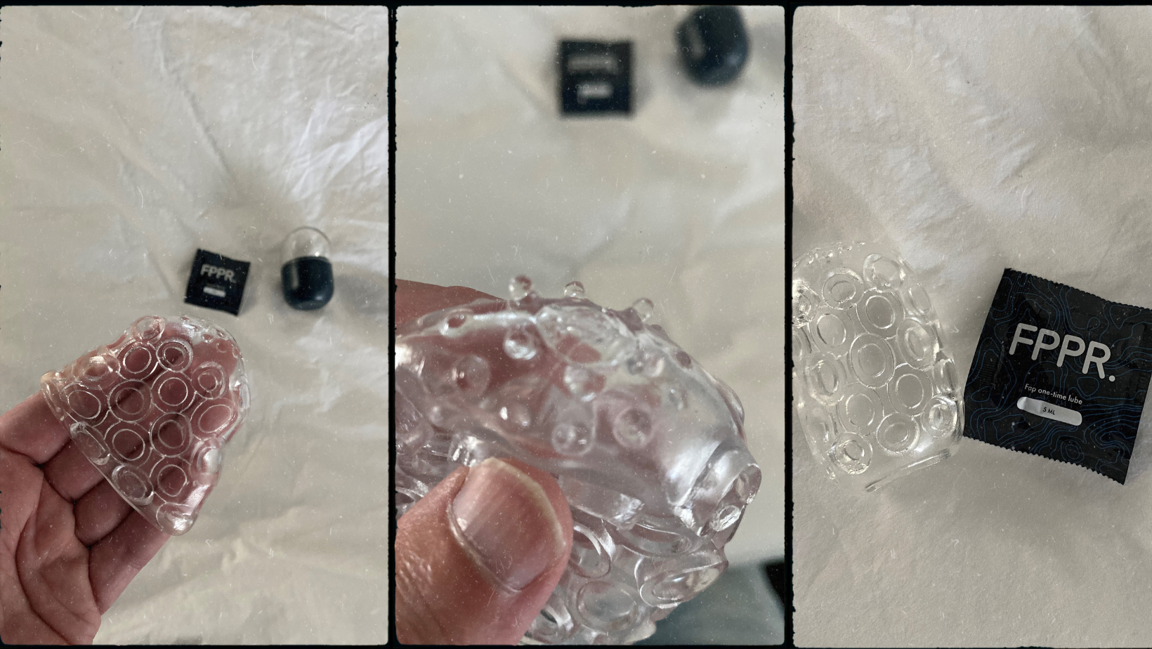 De huls van FPPR. heeft aan de binnenkant een structuur. De drie verschillende FPPR. Fap One Time masturbators verschillen alleen van structuur. De ‘Intense Circle’ die ik teste, heeft aan de binnenkant cirkelvormige nopjes.