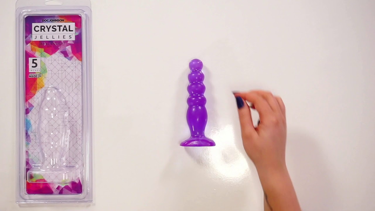 Opwindende, paarse Crystal Jellies Anal Delight van Doc Johnson. De paarse buttplug heeft een bolvormige top, een smalle onderkant en een brede voet. Breng wat anaal glijmiddel op de plug en laat hem bol voor bol naar binnen glijden. De gladde, geribbelde structuur zorgt voor een comfortabele penetratie. Breng de paarse plug in tijdens de seks en geniet van nog meer stimulatie. De platte onderkant voorkomt dat de plug naar binnen wordt gezogen. Gebruik een toycleaner om de plug na gebruik hygiënisch te reinigen.