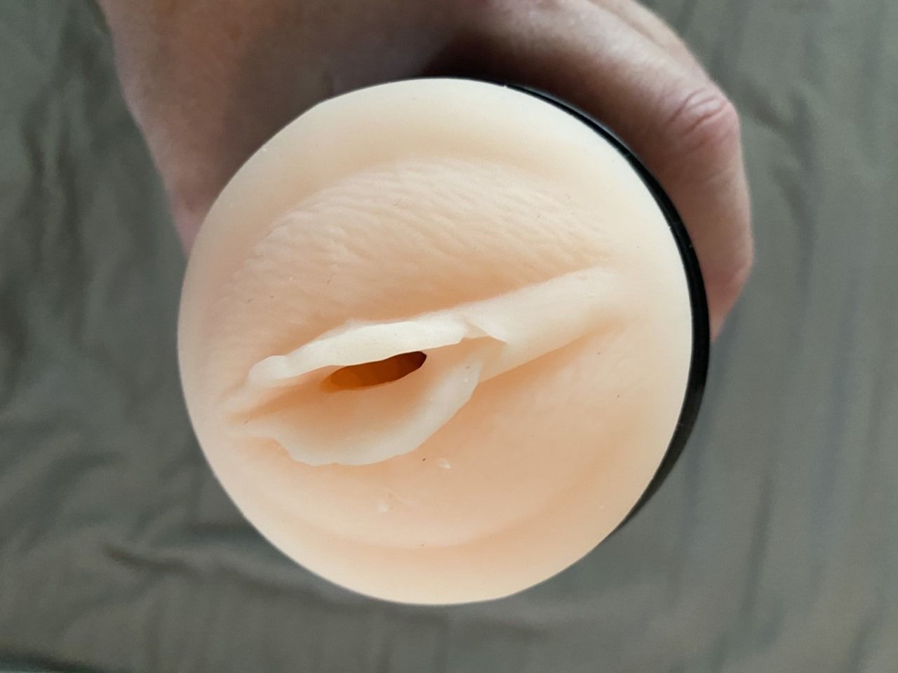 Tijd om de toy echt uit te testen! Ik draai de masturbator vast aan de zuignap, zuig deze vast aan de muur in de douche, doe wat glijmiddel op, een cockring om en stop m’n penis in de sleeve. De sleeve voelt realistisch aan en heeft een structuur vol bubbels aan de binnenkant (vandaar de naam Fanta Flesh Sleeve, duhhhhh! Nee, grapje!????). Deze bubbels zijn niet zoals in bijvoorbeeld een Fleshlight waar er een extra ribbelige structuur in zit voor de stimulans, maar hij is natuurlijk ook niet bedoeld om zonder de vibratie- en milkingstand te gebruiken, dus het is ze vergeven dat het iets minder “ribbelig” van binnen is.